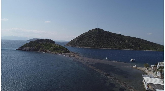 Muğla'nın Bodrum ilçesinde çekilen sular Tavşan Adası'na uzanan binlerce yıllık kral yolunu yeniden ortaya çıkardı.