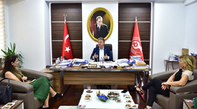 Bornova Belediye Başkanı Dr. Mustafa İduğ, belediyeciliğin çok farklı alanlarda bilgi sahibi olmayı gerektirdiğini belirterek, kurumlararası ilişkilerin önemine dikkat çekti.Liyakat (Lider Yaratıcı Katılımacılar Derneği) Başkanı Berkay Eskinazi ve yönetim kurulu üyeleri ile biraraya gelen Başkan İduğ, özellikle çocukların eğitimi, gençlerin istihdamı ve kadınların üretime katılmasına yönelik projelerde birlikte çalışmak istediklerini söyledi. Berkay Eskinazi ise Başkan İduğ'un ortaya koyduğu vizyon ve anlattığı prolerinin kendisinde büyük heyecan yarattığını belirterek,"İnşallah uzun yıllar hep birlikte, kolkola güzel işlere imza atarız" dedi.