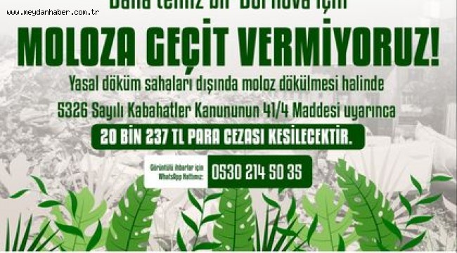Bornova Belediyesi Zabıta Müdürlüğü ekipleri, ‘Daha temiz bir Bornova için moloza geçit vermiyoruz’ sloganıyla başlatılan çevre seferberliği kapsamında kenti sokak sokak denetleyerek yasal döküm alanlarının dışında kalan alanlara moloz dökenler hakkında tutuyor. Gerekli uyarıların yapılarak 5326 Sayılı Kabahatler Kanunu’nun 41/4 Maddesi uyarınca üst sınır olan 20 bin 237 TL ceza kesiliyor.