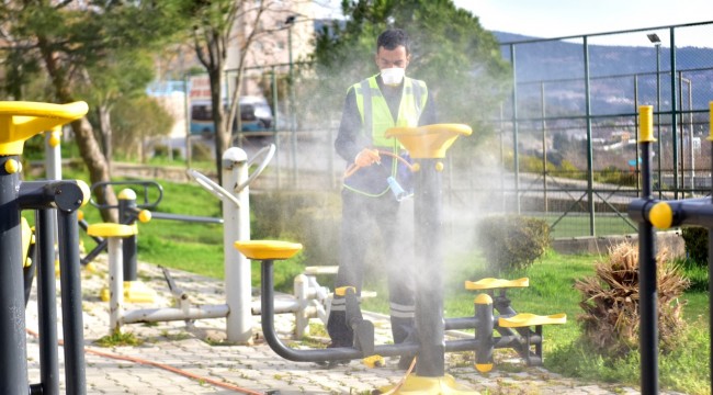 7-24 esasıyla çalışan Temizlik İşleri ve Park Bahçeler Müdürlüğü ekipleri, zorunlu hizmetin sürdüğü hastane, sağlık ocağı, karakollar olmak üzere kamu kurumlarının binalarını temizliyor. Vatandaşlardan zorunlu olmadığı halde evlerinden çıkmamaları istense de en küçük risklerin bile önüne geçmek adına, yolları yıkıyor, pazaryerlerini, park ve bahçeleri ilaçlıyor, muhtarlık ofislerini elle temas edilen ya da oturulan alanları dezenfekte ediyor.
