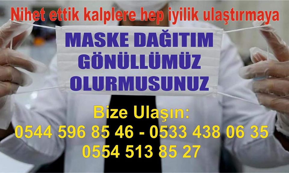 Bizler İzmir iyilik hareketi olarak gönüllü ekibimizle birlikte İzmir geneline maske dağıtımımız bizlere gönüllü katılan kişilerle dağıtmaya devam ediyoruz Acil Maske ihtiyaçlarınızı Buca’da Ücretsiz Dağıtım 2 Noktamızdan alabilirsiniz Bilgi:0533 438 06 35 – 0554 513 85 27