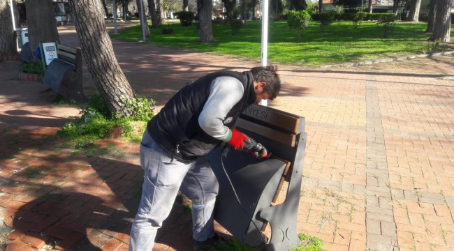 Burhaniye Belediyesi Korona virüsü tedbirleri kapsamında ilçede ki bankları sökmeye başladı.