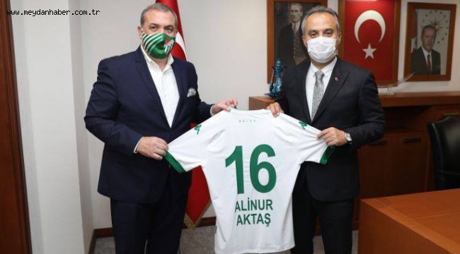 Bursaspor Kulüp Başkanı Erkan Kamat’ı ağırlayan Bursa Büyükşehir Belediye Başkanı Alinur Aktaş, şehir olarak Bursaspor’a sahip çıkılması halinde geleceğe ümitle bakılabileceğini söyledi.