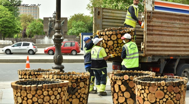 İrade Meydanı’nı geri dönüşümden üretilen ağaç saksılarla ve çiçeklerle süslerken,