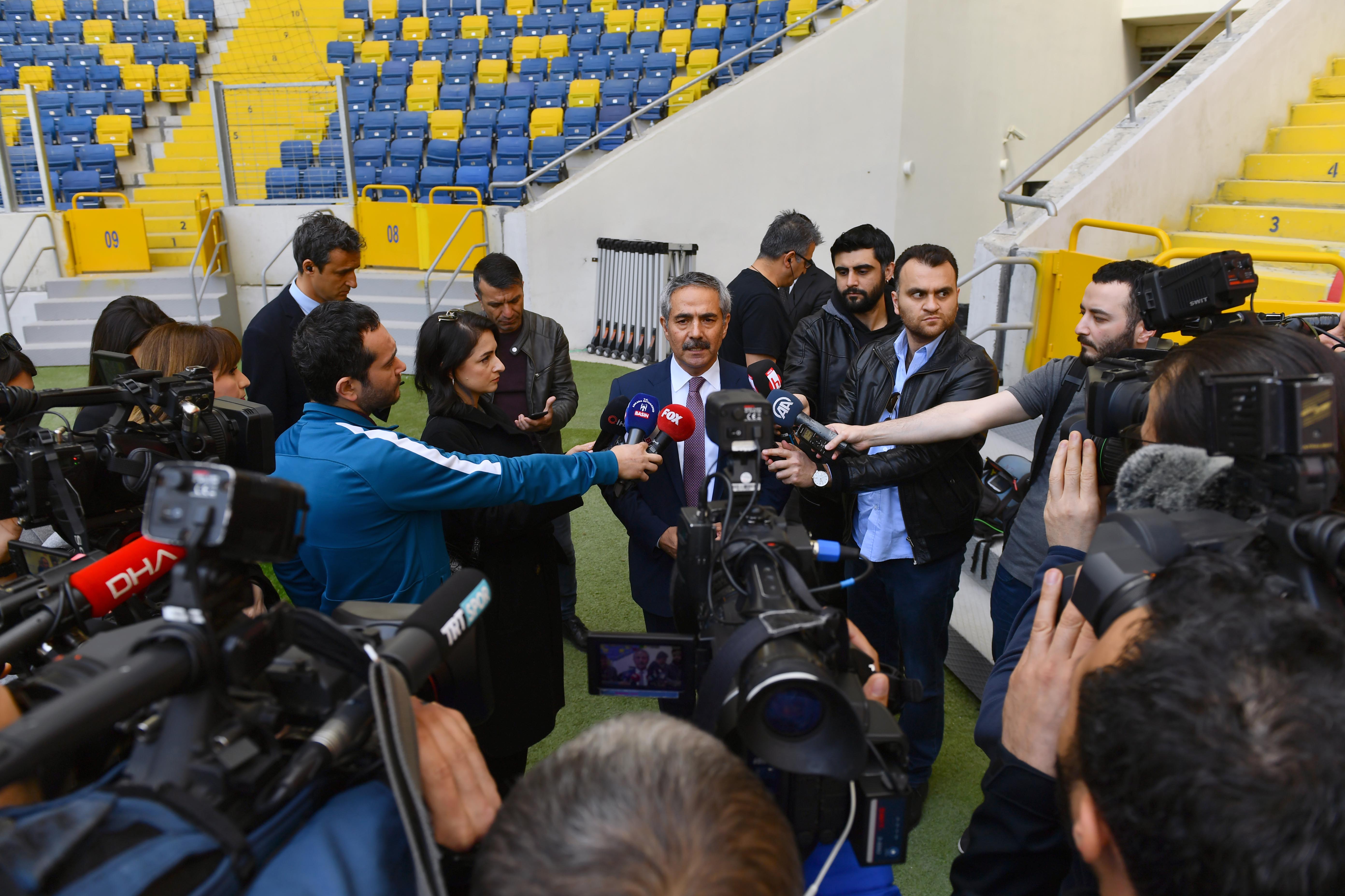 Çalışmaları yerinde inceleyen Sağlık İşleri Daire Başkanı Seyfettin Aslan, “Büyükşehir Belediye Başkanımız Sayın Mansur Yavaş’ın talimatı doğrultusunda koronavirüs ile ilk günden itibaren mücadelemizi yoğun şekilde üst seviyeye taşıdık. Burada Ankaragücü ve Çaykur Rizespor maçı yapılacak. Maç öncesi Eryaman Stadı’nın temizlik ve dezenfeksiyon işlemini yaptık. Cuma günü Ankaralılar gönül rahatlığıyla buraya gelip maçı izleyebilirler” dedi.