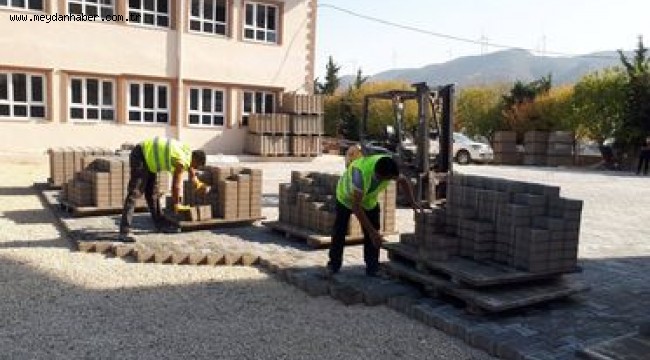 bahçesinde kilitli parke taşı döşeme çalışmalarına başladı.