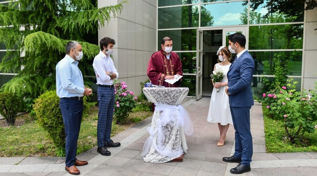Ankara İl Umumi Hıfzıssıhha Kurulu, İç İşleri Bakanlığı’nın “Nikah Merasimlerinde Uygulanacak Tedbirler” başlıklı genelgesi kapsamında 15 Haziran tarihinden itibaren geçerli olacak yeni kararlar aldı. Büyükşehir Belediyesi normalleşme süreciyle birlikte evlenmek isteyen çiftlerin nikahlarını Gençlik Parkı’nın bahçesinde sosyal mesafe kurallarını dikkate alarak, açık havada ve maskeli olarak kıyıyor.