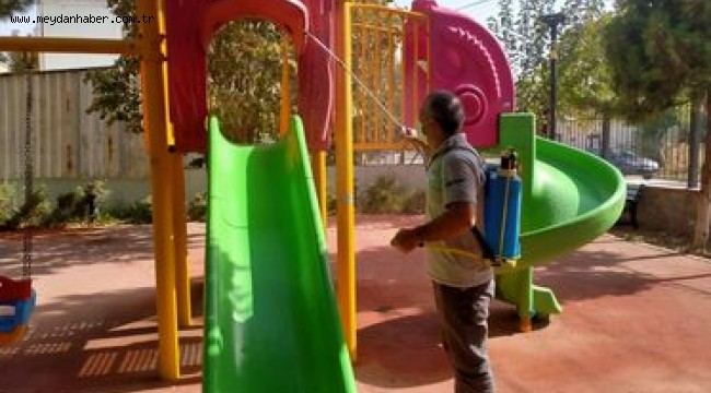 Manisa Büyükşehir Belediyesi, koronavirüs salgınının baş gösterdiği ilk andan itibaren,halk sağlığının korunması amacıyla ortak kullanım alanlarında dezenfeksiyon işlemlerini sürdürüyor. Büyükşehir Belediyesi Hizmet Birimlerinden, çocuk oyun alanlarına kadar toplu kullanım alanlarında hijyen ve dezenfekte çalışmalarını kararlılıkla sürdürdüklerini belirten Manisa Büyükşehir Belediye Başkanı Cengiz Ergün, “Vatandaşlarımızın sağlığı için, koronavirüs salgına karşı, ilk günden itibaren tüm ekiplerimiz ile seferber olduk. Sürecin başından beri, Büyükşehir Belediyesi Hizmet Birimlerimizde, toplu taşıma araçlarında, gasilhaneler ve çocuk oyun alanları başta olmak üzere toplu kullanım alanlarında periyodik olarak dezenfekte çalışmamıza devam ediyoruz. Çalışmalarımıza aynı kararlıkla devam edeceğimizi belirtiyor, hemşehrilerimizin de belirtilen kuralla riayet etmelerini rica ediyorum”dedi.