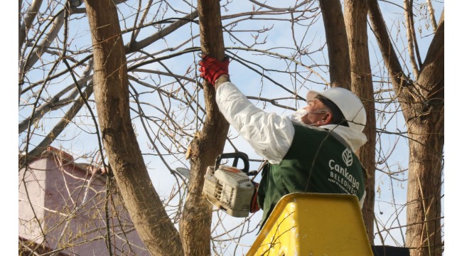 ağacının kurumuş dallarını temizleyen Çankaya Belediyesi, ağaçları bahara hazırlıyor.