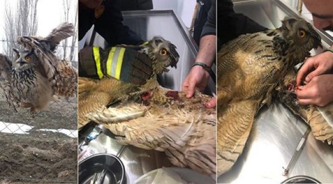 Çankırı Belediyesi İtfaiye ekipleri, vatandaşlardan gelen ihbar üzerine Yapraklı ilçesi Subaşı köyünde dikenli tellere takılan baykuşu kurtarma operasyonu gerçekleştirdi. Ağır yaralanan baykuş, ekiplerin titiz müdahalesi sonucu kurtarılarak tedavi altına alındı.