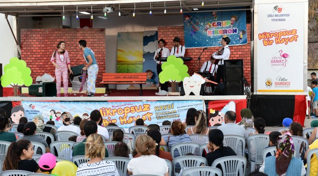 Çiğli Belediyesi sıcak yaz akşamlarını düzenlenen aktivitelerle eğlenceli hale getirmeye devam ediyor. Mahallelerde sahnelenen ücretsiz tiyatro oyunu “Mikropsuz Bir Hayat” oyunuyla çocuklar hem hoş vakit geçiriyor, hem de sağlıklı yaşam konusunda bilgileniyorlar.