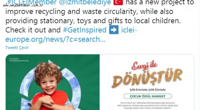 Çevre dostu İzmit Belediyesi tarafından gerçekleştirilen geri dönüşüm projeleri hem ulusal hem de uluslararası alanda dikkat çekmeye devam ediyor. Çevrenin korunması ve atıkların değerlendirilerek ekonominin canlanması amacıyla birçok geri dönüşüm projesini hayata geçiren İzmit Belediyesi, şimdi de İzmit Kent Konseyi ile birlikte hayata geçirdiği Çocuk Ödül Market projesi ile ICLEİ küresel ağı üzerinden binlerce kişiye ulaştı.
