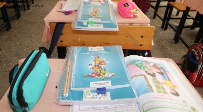 çocuklara defter, kalem, silgi ve kalemtıraştan oluşan kırtasiye eğitim seti hediye ediyor.