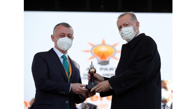 Cumhurbaşkanı Erdoğan, Kılavuz Gençlik Modeli kapsamında yapılan projelerden dolayı Başkan Büyükakın’a Gençlik ve Yerel Yönetimler Yarışmasında ödül verdi
