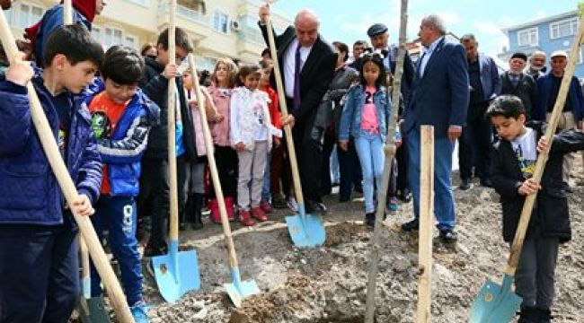 Başkan Altınok çocuklarla birlikte ladin, sedir, mavi servi, leylandi, karaçam, akçağaç türlerindeki ağaçları toprakla buluştururken, ilk can sularını da verdi. Altınok, “Çocuklar hem çiçek hem melek hem de gelecektir” derken onlardan ağaçları koruma sözü de aldı.