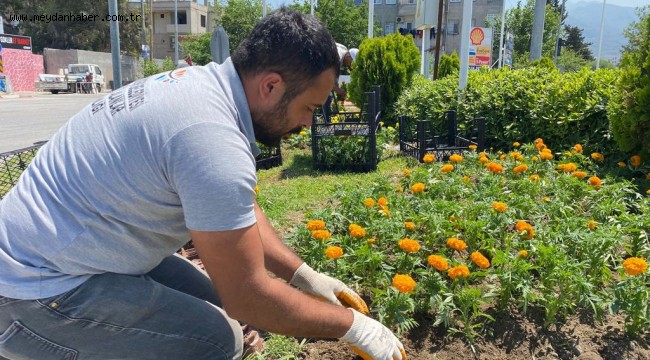 Dörtyol’un farklı bulvar, refüj ve alanlarında mevsimlik çiçek eken ekipler, çalışmalarını Antakya Serinyol Mahallesi’nde de sürdürdü.