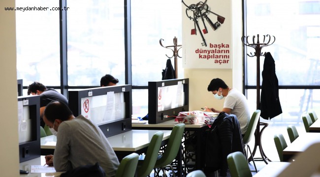 bünyesinde hizmet veren Halk kütüphanesinde öğrenciler sessiz bir ortamda ders