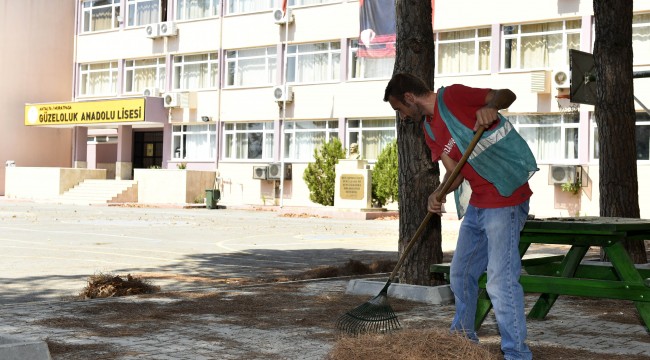 Muratpaşa Belediye Başkanı Ümit Uysal, 9 Eylül Pazartesi günün başlayacak yeni eğitim ve öğretim yılı öncesinde belediye ekiplerinin hummalı bir çalışma içinde olduğunu söyledi. Okulların talepleri doğrultusundaspor sahalarının yenilenmesinden boya ve asfalt işlerine kadar tüm iş ve işlemleri gerçekleştirdiklerini belirten Başkan Uysal, “Okulların açılmasına artık sayılı günler kala Muratpaşa’da camilerini ve parklarını temizliğinde görevli denetimli serbestlik yükümlüleri de okulların temizliğinde görev almaya başladı. Park Bahçeler Müdürlüğü ekiplerimiz de peyzaj, çim biçme, ağaç budama çalışmaları yapıyor” dedi.
