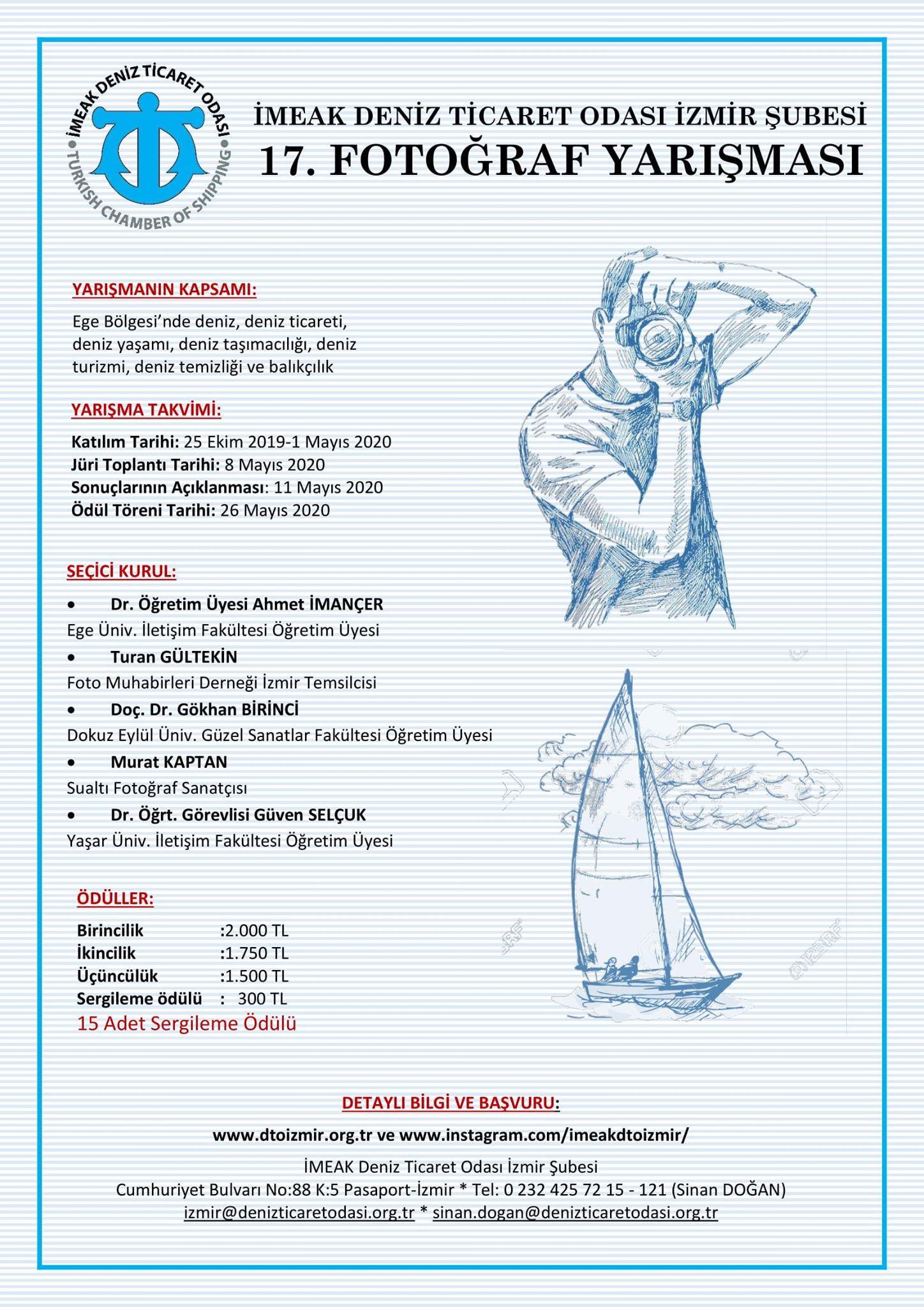 Fotoğraf yarışması ile ilgili şartname ve detaylı bilgilere www.dtoizmir.org.tr web adresinden ve İMEAK Deniz Ticaret Odası İzmir Şubesi sosyal medya hesaplarından ulaşılabilecek.