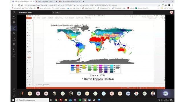 Ege Üniversitesi Çevre Sorunları Uygulama ve Araştırma Merkezi (ÇEVMER) tarafından düzenlenen “Perşembe Seminerleri” devam ediyor. Çevrimiçi gerçekleşen seminerler kapsamında Ege Üniversitesi Fen Bilimleri Enstitüsü Çevre Bilimleri Anabilim Dalı yüksek lisans öğrencisi Fatma Nur Derdiyok tarafından “Geleneksel Akdeniz Mimarisinde Pasif Bina Çözümleri” konulu sunum yapıldı. Seminere; ÇEVMER Müdürü Prof. Dr. Dinçer Ayaz, Fatma Nur Derdiyok’un danışmanı Ege Üniversitesi Mühendislik Fakültesi İnşaat Mühendisliği Bölümü öğretim üyesi Doç. Dr. Gülben Çalış, akademisyenler ve öğrenciler katıldı.
