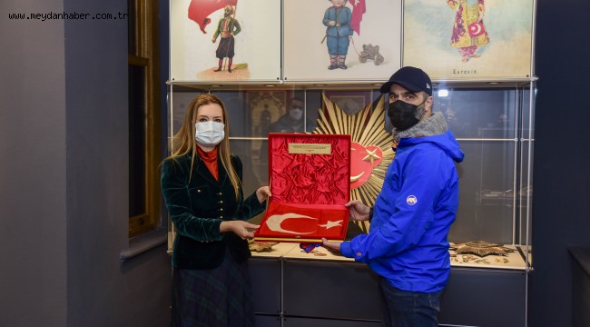 Türk Bayraklarının şanlı tarihinin anlatıldığı müzede yapılan gezinin ardından Rektör Prof. Dr Nükhet Hotar, Azerbaycanlı dağcılara 1950 yılından kalan el yapımı yün Türk Bayağı hediye etti. Hotar, “Türk milleti olarak gözünü kırpmadan uğrunda can verdiğimiz mukaddes Türk Bayrağımızı değerli sporcularımıza takdim ediyoruz. Kardeş ülke Azerbaycan’a bizden bir anı olsun” ifadelerini kullandı.