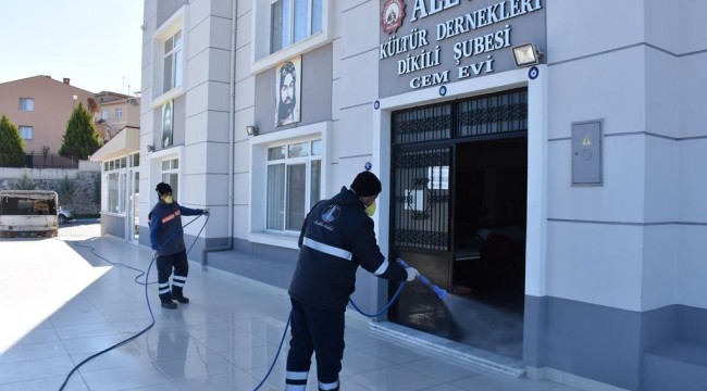 Tüm dünyayı etkisi altına alan koronavirüse karşı Dikili Belediyesi ilçedeki dezenfekte çalışmalarına hızla devam ediyor.