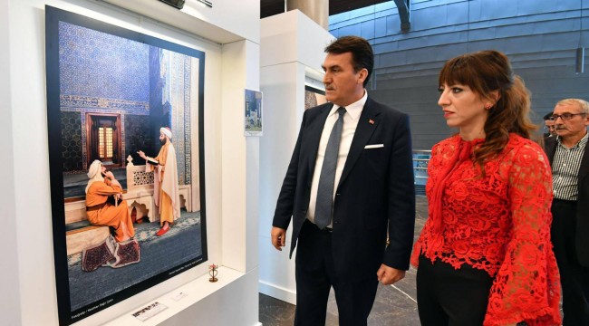 Osmangazi Belediye Başkanı Mustafa Dündar, Bursalı fotoğrafçı Neslihan Sağır Çetin’in ‘Resm-i Mekan’ adlı fotoğraf sergisini gezdi. Başkan Dündar, dünyaca ünlü Türk ressam Osman Hamdi Bey’in ‘Kaplumbağa Terbiyecisi’ adlı tablosunda yer alan kaplumbağa terbiyecisinin kıyafetlerini giyerek tabloyu canlandırdı.