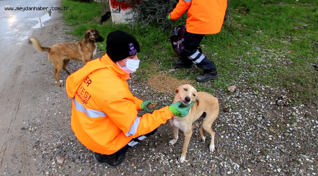 yapıp; sokak hayvanları için de kentin çeşitli noktalarına mama bıraktı. Efeler Belediyesi