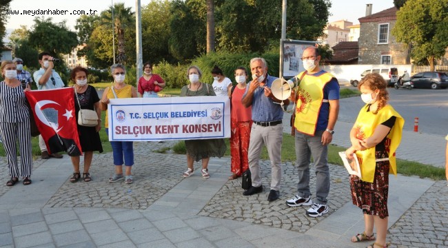 Basın açıklamasında Selçuk Efes Kent Konseyi Başkanı Atay Tozlu kadın cinayetleriyle ilgili rakamsal veriler paylaşarak; “ Kadına yönelik şiddetin yanı sıra çocuklara, hayvanlara ve tüm insanlara yönelik şiddete karşıyız” dedi.