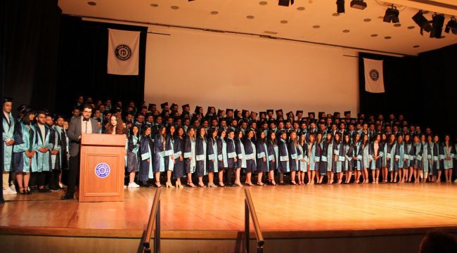 İZMİR(Ege Ajans) - Ege Üniversitesi Çeşme Turizm Otelcilik ve Meslek Yüksekokulu 2018-2019 Mezuniyet Töreni büyük coşkuyla gerçekleştirildi. Prof. Dr. Yusuf Vardar MÖTBE Kültür Merkezi’nde gerçekleşen törene Ege Üniversitesi Rektör Yardımcısı Prof. Dr. Mehmet Ersan, Çeşme Turizm ve Otelcilik Yüksekokulu Müdürü Prof. Dr. Adnan Türksoy, akademisyenler, öğrenciler ve aileler katıldı.