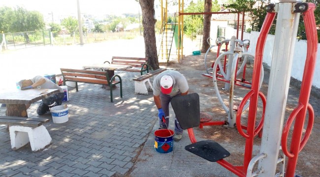 Bir yandan Ergene’nin çeşitli mahallelerine yeni parklar yaparak halkın hizmetine sunan Ergene Belediyesi diğer yandan da mevcut parkların bakım ve onarımlarını yaparak parklarda boya çalışması yapıyor.