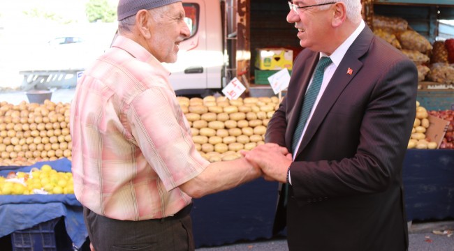 Velimeşe Mahallesinde kurulan semt pazarını ziyaret eden Ergene Belediye Başkanı Rasim Yüksel pazarcı esnafına hayırlı işler dileklerinde bulunurken, pazarda alış veriş yapan vatandaşlarla da bol bol sohbet etti.