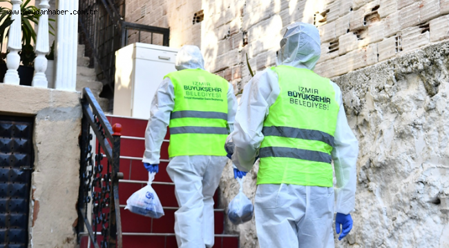 Hastalar İzmir İl Sağlık Müdürlüğü işbirliğinde tespit ediliyor. Tespit edilen hastalar arasında talepte bulunanlara İzmir Büyükşehir Belediyesi’nin iştiraki Grand Plaza’ya ait ekipler yemek dağıtıyor. Büyükşehir ekipleri, koruyucu kıyafetleriyle sosyal mesafe ve hijyen koşullarına dikkat ederek yemekleri kapıya bırakıyor.