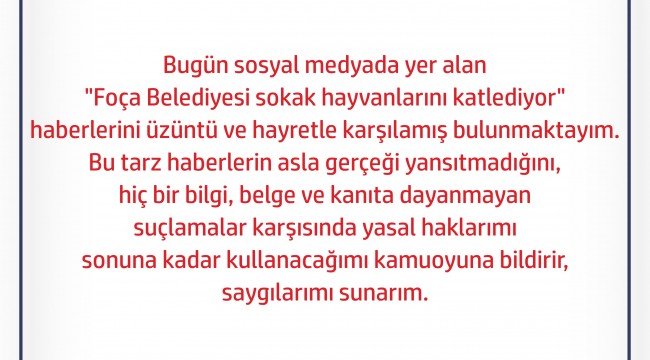 Bugün sosyal medyada yer alan ‘‘Foça Belediyesi sokak hayvanlarını katlediyor’’ haberlerini,üzüntü ve hayretle karşılamış bulunmaktayım.