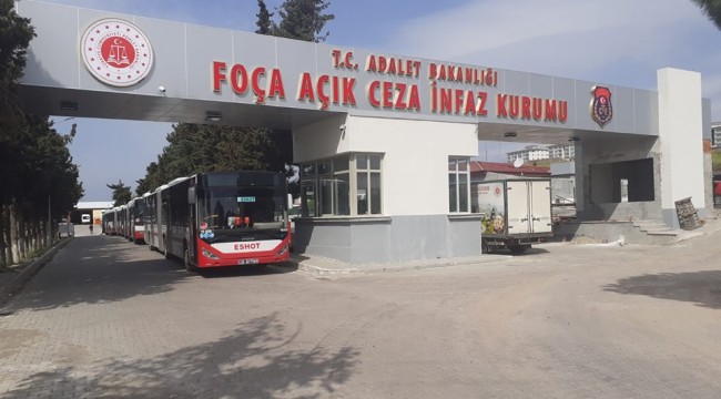 Bugün itibariyle yasa gereğince 1247 kişi Foça Açık Ceza İnfaz Kurumundan izinli olarak ayrılıyorlar .Sabah başlayan izin belgeleri ile 1247 kişi ayrılıyor .İzmir Cumhuriyet Cumhuriyet baş savcılığı gözetiminde ,Büyükşehir Belediyesi, Izmir Il Emniyet Müdürlüğünün , birlikte çalışmalarıyla buradan hükümler otobüslerle gerek il içinde gerekse şehirlerarası gidecekleri noktalara korunma önlemleri alınarak bulundukları noktalara kişinin sevki sağlanıyor. İl içindeki oturanlar semtlerine göre dağıtımı yapılarak il dışındakiler kendi şehirlerine gidecek şekilde dağıtımı yapıldı.Bazı hükümlüler İzmir il garajına gidiyor oradan memleketlerine kontrollü olarak gidecekler .