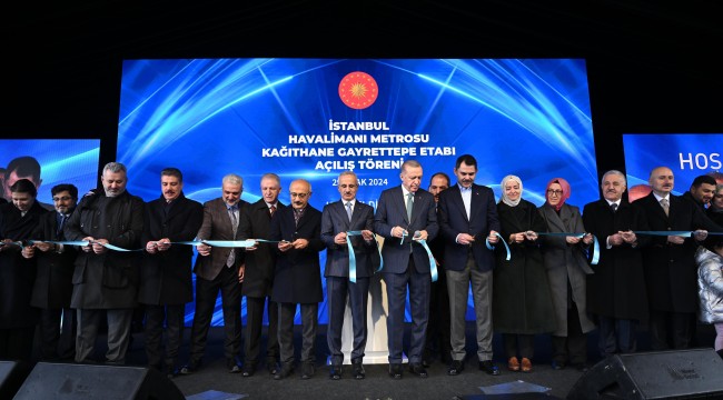 Erdoğan, Gayrettepe'ye bağlayan Kağıthane-Gayrettepe kesiminin açılışını yapmak üzere bir arada olduklarını belirterek, "Böylece İstanbul Havalimanı ile Gayrettepe arasında kesintisiz metro ulaşımını sağlamış oluyoruz." dedi.