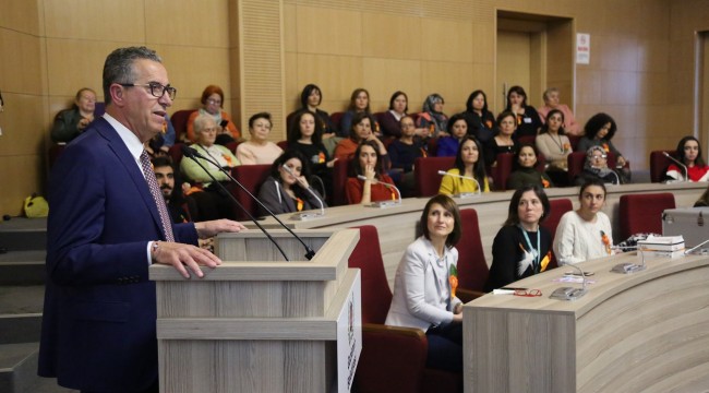 Gaziemir Belediyesi Meclis Salonunda gerçekleştirilen bilgilendirme toplantısında konuşan Gaziemir Belediye Başkanı Halil Arda, kadınlar ve çocuklar için çalışmaya hız kesmeden devam edeceklerini söyledi. 25 Kasım Dünya Kadına Yönelik Şiddetle Uluslararası Mücadele Günü kapsamında düzenledikleri etkinlik ile farkındalık yaratmak istediklerini belirterek “Kadın dostu Gaziemir için mücadele veriyoruz. Amacımız kadınlarımızın sağlıklı, güvenli, mutlu olması. İlçemizde bu koşulları yaratmak için var gücümüzle çalışıyoruz. Kadın sağlığının önündeki engellerin kaldırılması için sağlık taramaları ve bilgilendirme toplantılarıyla onların yanlarında olmak istiyoruz” dedi.