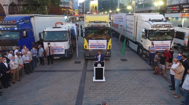 Başkan Usta, "Ülkemizin son günlerde karşılaşmış olduğu durumlar hepimizce malum. Başta sel ve deprem felaketleri. Dünyanın belki de yüz yılda karşılaşmadığı yangın felaketi ve şimdi de çok ender rastlanan şekliyle bir felaketle karşı karşıyayız. Millet olarak bunun üstesinden geleceğimize inanıyoruz. Devlet millet işbirliği içerisinde bugüne kadar olanların üstesinden geldik. Çok hızlı hareket eden devletimizin bütün organlarına destek olmak amacıyla sizlerin destek ve duasıyla bu tırlarımızı ve iş makinamızı orada olacak şekilde uğurluyoruz. Orada çok büyük bir felaket yaşanıyor. Büyük mağduriyetler, çökmüş binalar kaybolmuş insanlar var. Bir dilim ekmek bulamayan bir yudum su içemeyen duruma düşmüş insanlar var. Ama biz burada sizlerin desteğiyle öncülük yapmak adına farkındalık oluşturmak adına bu çalışmayı başlattık" dedi.