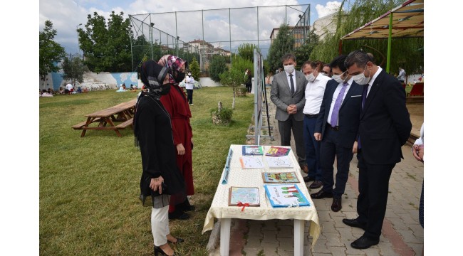 Programın devamında protokol üyeleri anaokulu velilerince yapılan kitap afiş sergisini gezdi.