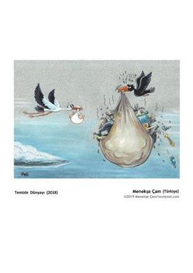 Sergide 5 kıta otuz beş ülkeden 100 karikatür bulunuyor. Karikatürler iklim krizine, çevre kirliliğine, denizdeki plastik yığınlarına, çöp dağlarına ve trafik karmaşasına dikkat çekiyor.
