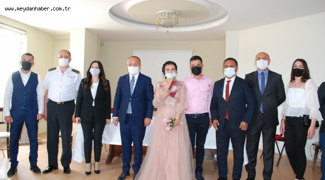 nikah törenine katıldı. Nikah töreni için belediye girişinde bekleyen genç çift ile Vali Ali Fuat Atik, ayak