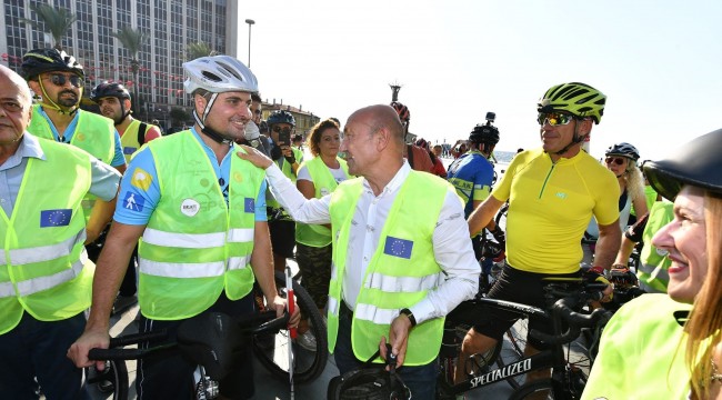 AB Türkiye Delegasyonu Basın Enformasyon ve İletişim Birimi Başkanı Maria Kanellopoulou da bisiklet kortejinde yer aldı. Başkan Tunç Soyer’e teşekkür eden Eşpedal Yönetim Kurulu Başkanı Saldıray Altındağ, Eşpedal’ın engelli bireyler ile engelsiz bireyler arasındaki mesafeleri birlikte pedallayarak aşan bir dernek olduğunu söyledi. Altındağ, etkinliğin, “tandem” olarak adlandırılan ve iki kişinin eşgüdüm içinde bisiklet kullanması amacıyla tasarlanan bu bisikletlerle görme engelli bireylerin bisiklet sürmesi fikrinden ortaya çıktığını anlattı. Altındağ, “Bisiklet kullanım kabiliyeti yüksek ve sorumluluk sahibi bisikletçi dostlarımız ile görme engelli arkadaşlarımız ı, derneğimiz bünyesinde bulunan tandem bisikletler üzerinde buluşturarak şehir içi ve şehirlerarası turlar düzenliyoruz. Kamplı turlar gerçekleştirerek doğayı birlikte deneyimliyoruz” şeklinde konuştu. Böyle etkinliklerin kendisini çok mutlu ettiğini belirten Başkan Soyer ise “En kısa zamanda daha geniş kapsamlı bir etkinlik düzenleyeceğiz” dedi.