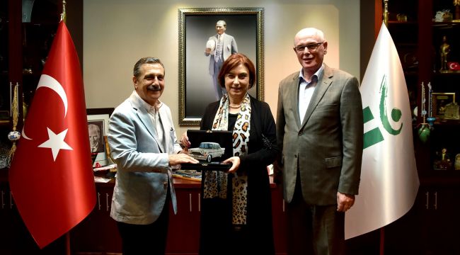 Konuşmaların ardından Başkan Ataç, Mumcu’ya Devrim otomobilinin camdan bir figürünü de armağan etti. Ziyaret Ataç, Mumcu ve Kurt’un çektirdikleri hatıra fotoğrafı ile son buldu.