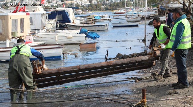 iskelelerin yıkımı Bodrum Belediyesi Yapı Kontrol Müdürlüğü Yıkım Şefliği tarafından Zabıta