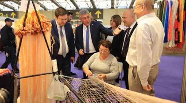 Güzelbahçe Belediyesi’nin semtevlerindeki kurslara katılan kadınların el emeği göz nuru sergilenip satışa sunulduğu standı gezen CHP Genel Başkan Yardımcısı Muharrem Erkek, CHP İzmir Milletvekili Murat Bakan, CHP Güzelbahçe İlçe Başkanı Çağlayan Bilgenve Güzelbahçe Belediye Başkanı Mustafa İnce, 8 Mart Dünya Emekçi Kadınlar Günü’nü kutladı. Belediye standında balık ağı yapan kadınların çalışmasını inceleyen Muharrem Erkek, el emeklerini sergileyen Güzelbahçeli kadınları kutlayarak, teşekkür etti. Ardından belediye standında hatıra fotoğrafı çektirdi.