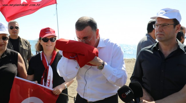 Yamaç paraşütçüleri, sahile indikten sonra Başkan Savaş ve Eryılmaz’a Türk bayrağı hediye etti. Gençler ve sporcularla bol bol sohbet eden Lütfü Savaş, bayramın tadını gençlerle birlikte doyasıya çıkardı.
