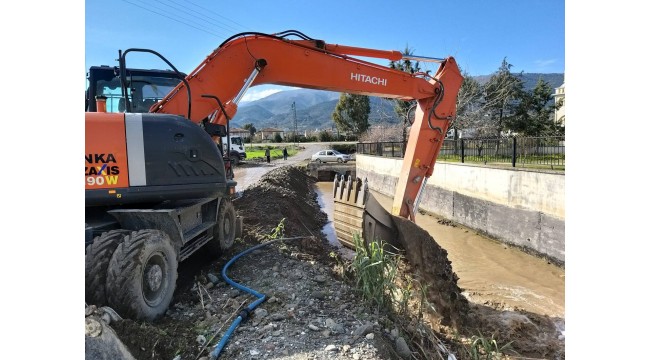 Büyükşehir ekipleri, kent gelinde aralıklarla etkili olan aşırı yağış sebebiyle dere yataklarında oluşabilecek