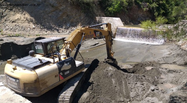 Antakya ilçesine bağlı Ballıöz Mahallesi’ndeki derede temizlik ve bakım çalışması gerçekleştiren