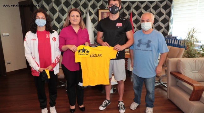 İzmit Belediye Başkanı Av. Fatma Kaplan Hürriyet, Yıldızlar Yüzme Kulübü Teknik Direktörü Antrenörü Aykut Çelik ve başarılı yüzücüleri makamında ağırladı
