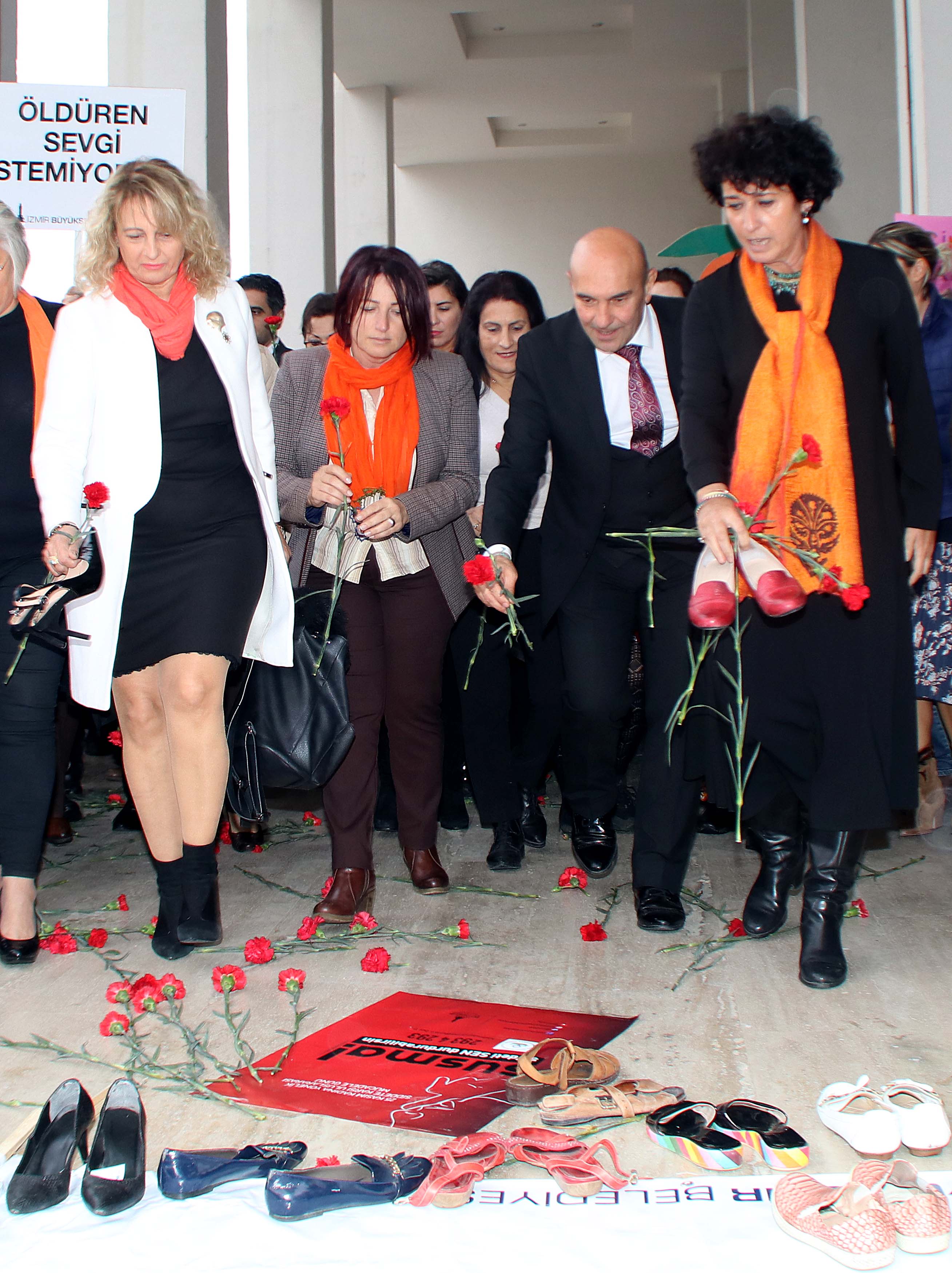 İzmir Kadın Kuruluşları Birliği (İKKB), 25 Kasım Kadına Şiddetle Mücadele gününde Konak Meydanı’nda şiddete dikkat çekmek için ayakkabı bıraktı. İzmir Büyükşehir Belediye Başkanı Tunç Soyer, CHP İzmir Milletvekili Bedri Serter ile belediye başkanları da etkinlikte yer aldı.